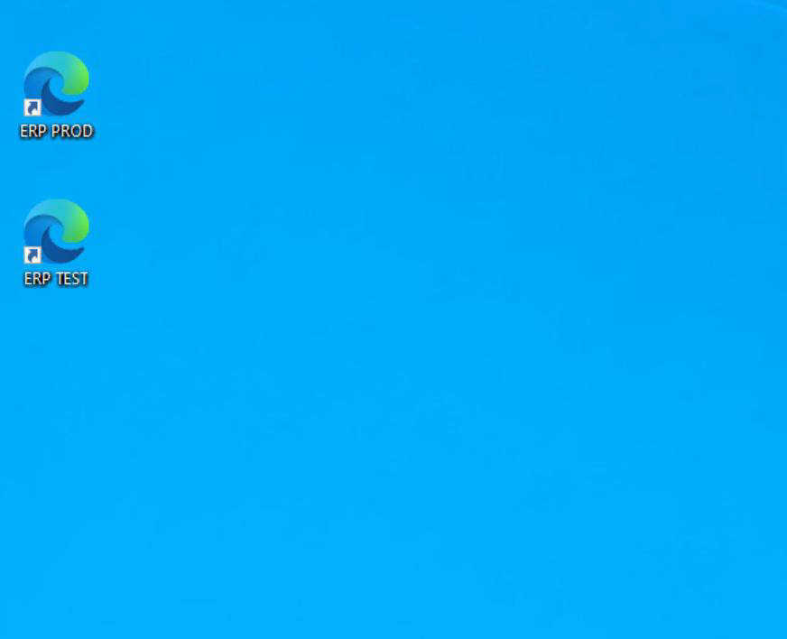 4. Na pulpicie serwera ERP znajdują się skróty do aplikacji ERP PROD i ERP TEST.